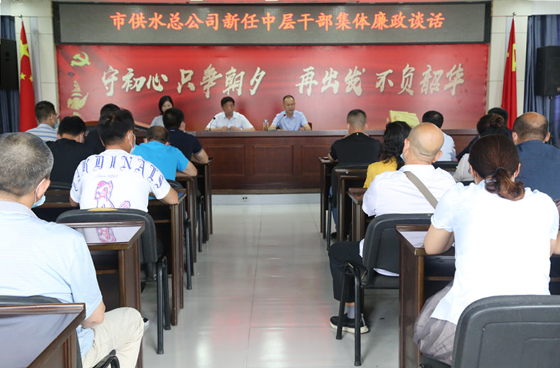 为提升干部管理水平,强化党风廉政观念,本着教育在先,预防在前的原则,6月18日,市供水总公司对生产运营部及所属部门的新任职党员领导干部进行集体廉政谈话。总公司纪委书记洪德义、副总经理沈建国及生产部门人员参加了会议。