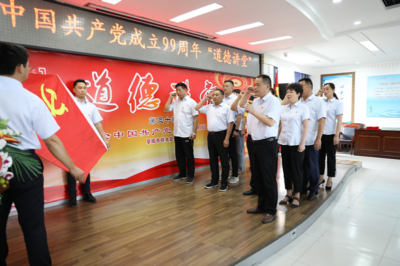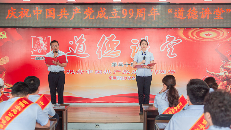 为热烈庆祝中国共产党99周年华诞,7月1日下午,市供水总公司在五楼会议室举办庆祝中国共产党成立99周年道德讲堂。