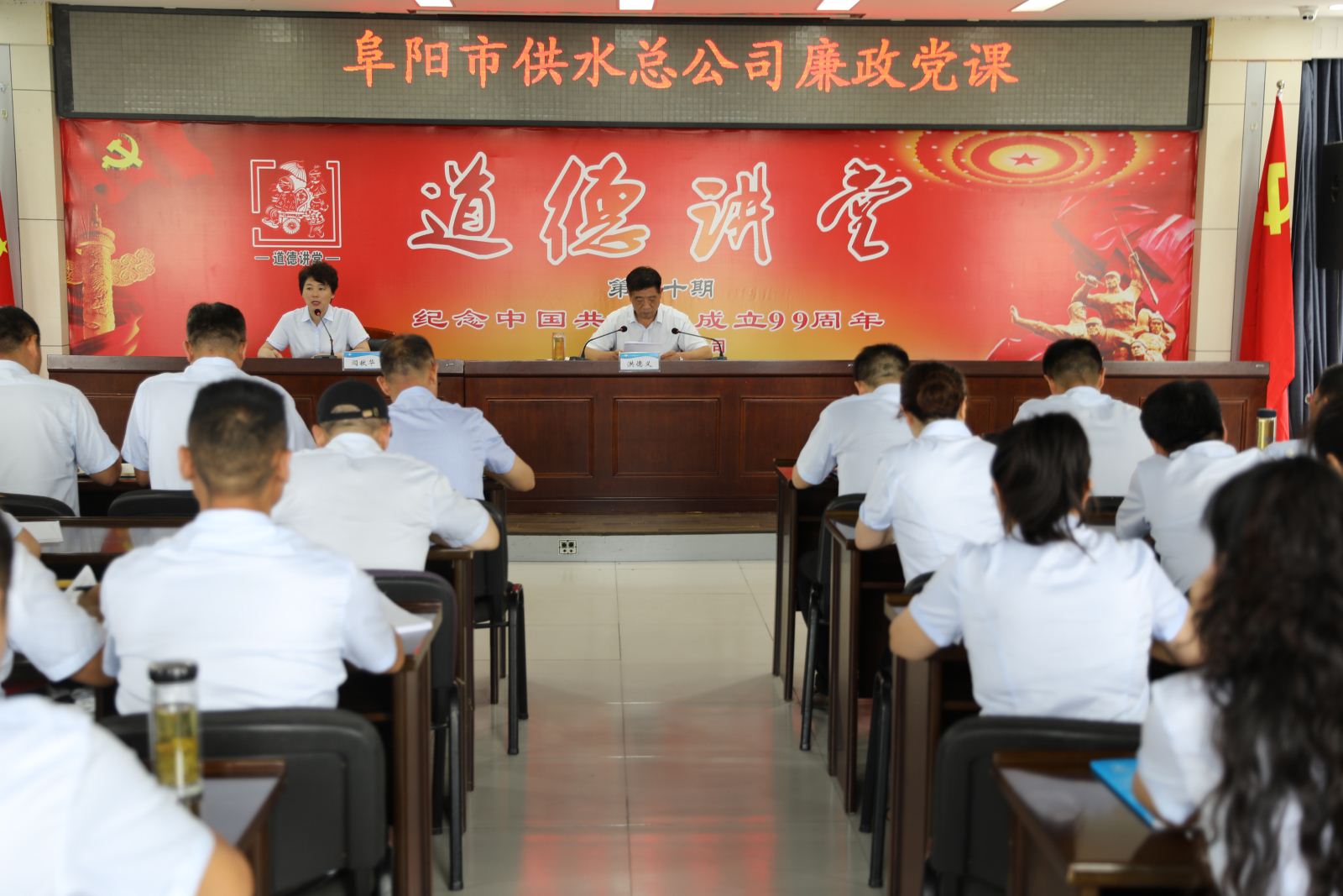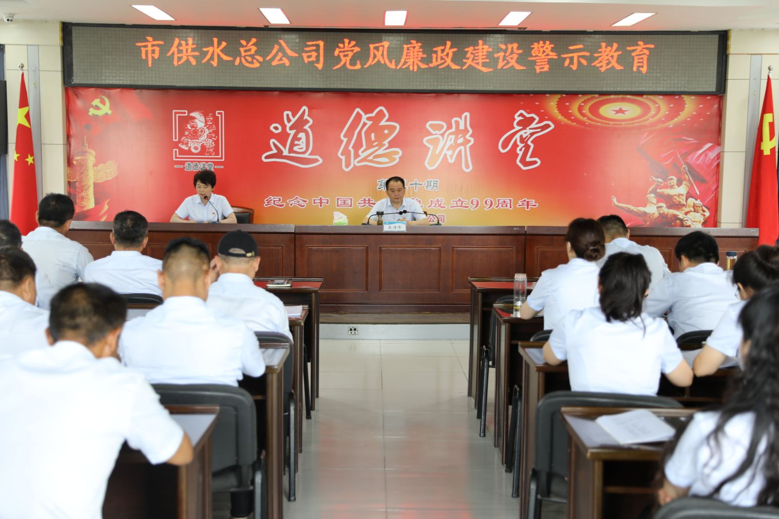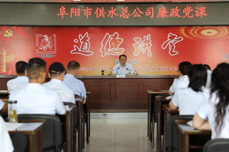 为深入贯彻落实党的十九大、十九届中央纪委四次全会精神,推进总公司党风廉政建设深入发展,强化总公司干部职工廉洁自律意识,7月10日上午,在公司五楼会议室开展了廉政教育党课并集中观看了廉政教育片。总公司党委书记张传峰和纪委书记洪德义为供水职工授课。