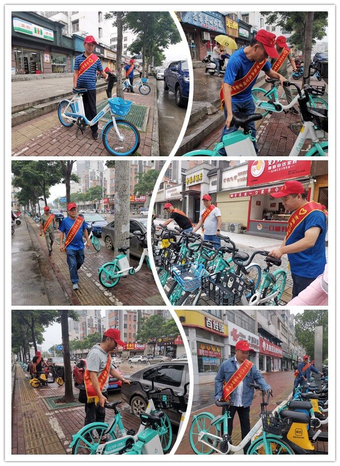 “请您规范停放电动车”,在“社区共建”现场,志愿者对共享单车乱停乱放的不文明行为进行及时纠正,并将没规范停车的共享单车复位,对社区街道卫生进行打扫,将绿化带、人行道及慢车道上的垃圾杂物及时清理干净,营造一个良好的文明居住环境。