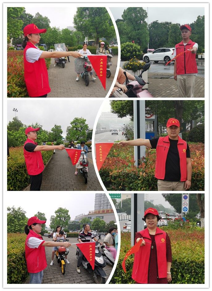 “请您按红绿灯提示,文明出行”,在交通劝导活动现场,供水志愿者们统一身穿小马甲,头戴小红帽,手执小红旗进行交通劝导,协助交警对路口非机动车和行人闯红灯、越线等候红灯、逆行等不文明交通行为进行劝导,引导市民养成文明出行、遵守交通法规的行为习惯。