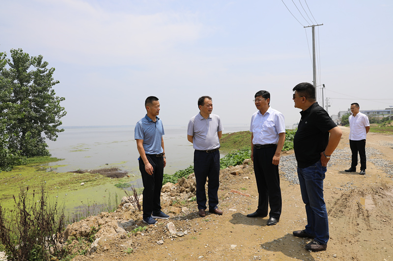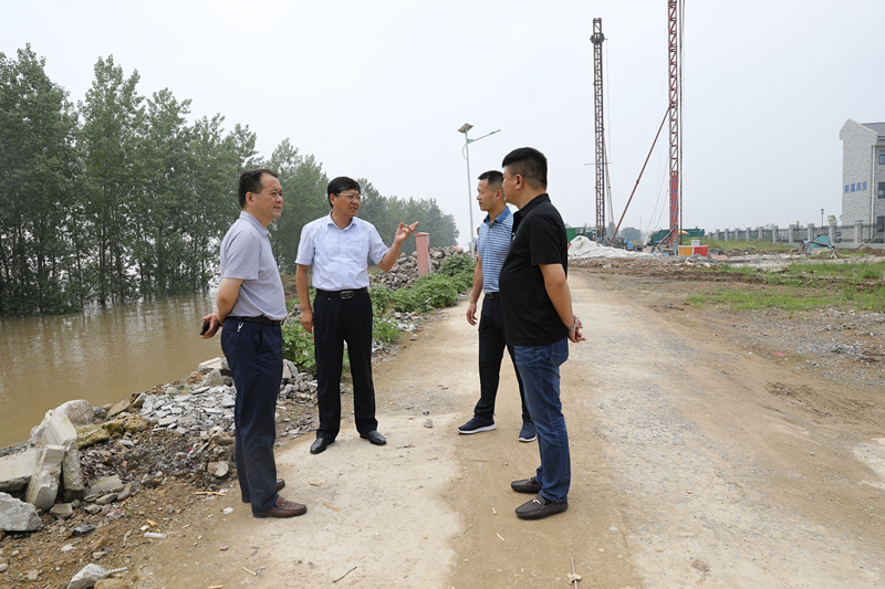 7月20日上午,市城乡建设局局长海阔两天内再次来到阜南县郜台乡曹台村第三水厂淮河取水口现场,详细了解取水口生产运营、安全度汛及防汛物资储备情况,总公司党委书记、总经理张传峰陪同检查。