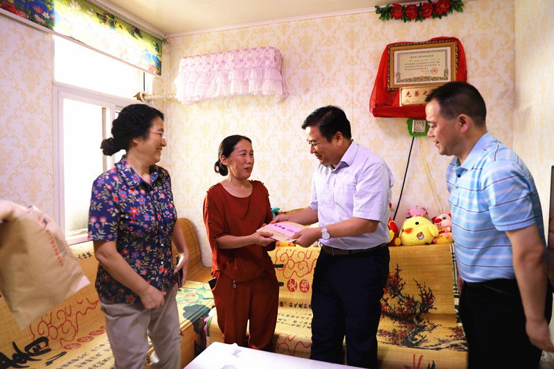 7月28日,市直工委书记李涛到市供水总公司军烈属刘梅家开展八一慰问活动,总公司党委书记、总经理张传峰陪同慰问。