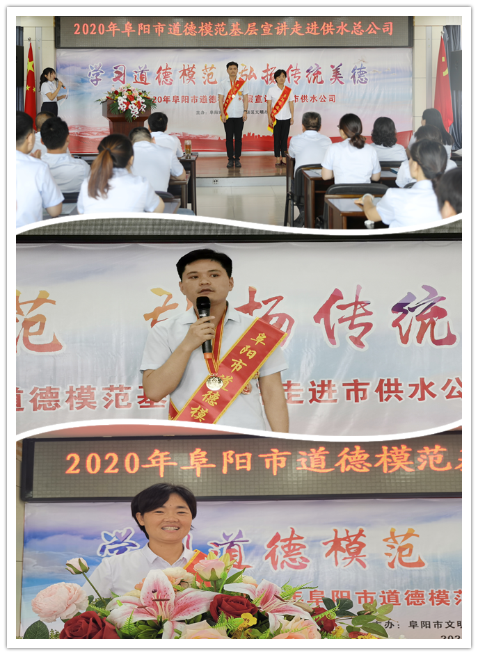 为深入学习贯彻习近平总书记对全国道德模范表彰活动的重要指示精神,8月10日,由阜阳市文明办主办的道德模范宣讲活动走进供水总公司,两位阜阳市道德模范给总公司员工分享了他们的故事。