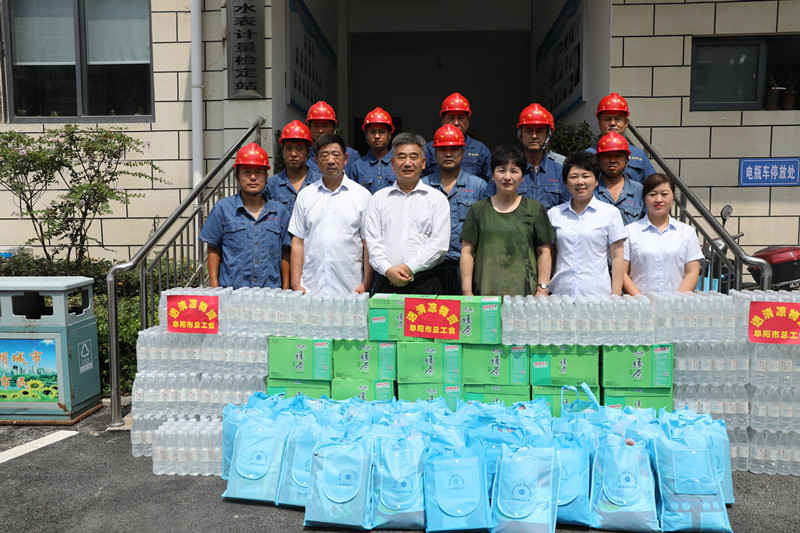 9月11日上午,市总工会党组书记、副主席房继红带队到市供水总公司看望慰问坚守岗位的供水人,为他们送去关爱与清凉,总公司党委副书记、副总经理闫献华,纪委书记、工会主席洪德义陪同慰问。