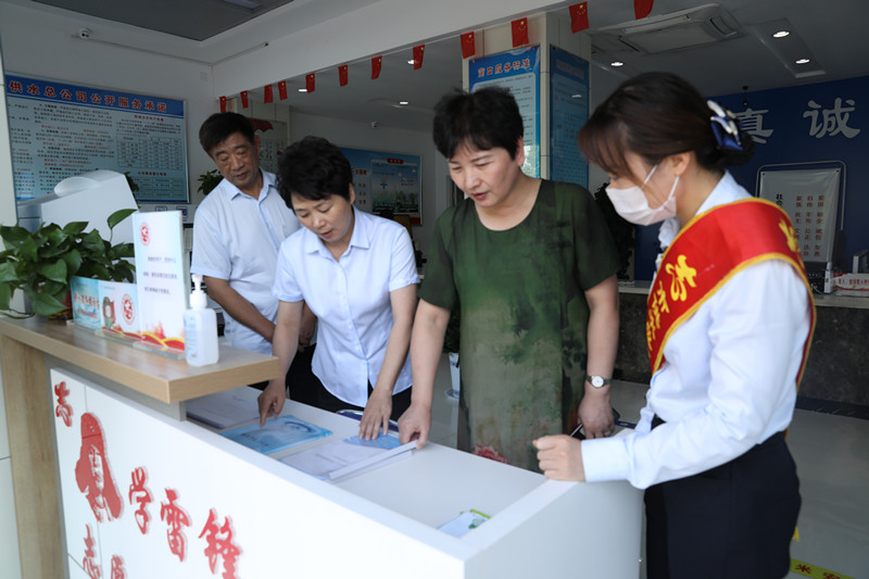 随后,房继红一行还来到怡和营业网点,慰问前台工作人员,查看了怡和营业网点文明创建工作的开展情况,对网点的文明创建工作进行了充分的肯定,同时也指出要把创建工作融入到平常的工作当中去,做到常态创建、长效创建。