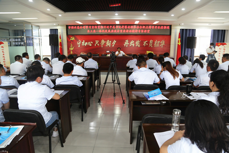 为进一步深入学习领会习近平总书记考察安徽重要讲话精神和在合肥主持召开扎实推进长三角一体化发展座谈会重要讲话精神,9月28日,市供水总公司特邀阜阳市直工委书记、省委理论宣讲团成员、安徽大学、阜阳师范学院兼职教授李涛就深入学习贯彻习近平总书记考察安徽和在合肥主持召开扎实推进长三角一体化发展座谈会重要讲话精神作专题辅导报告。