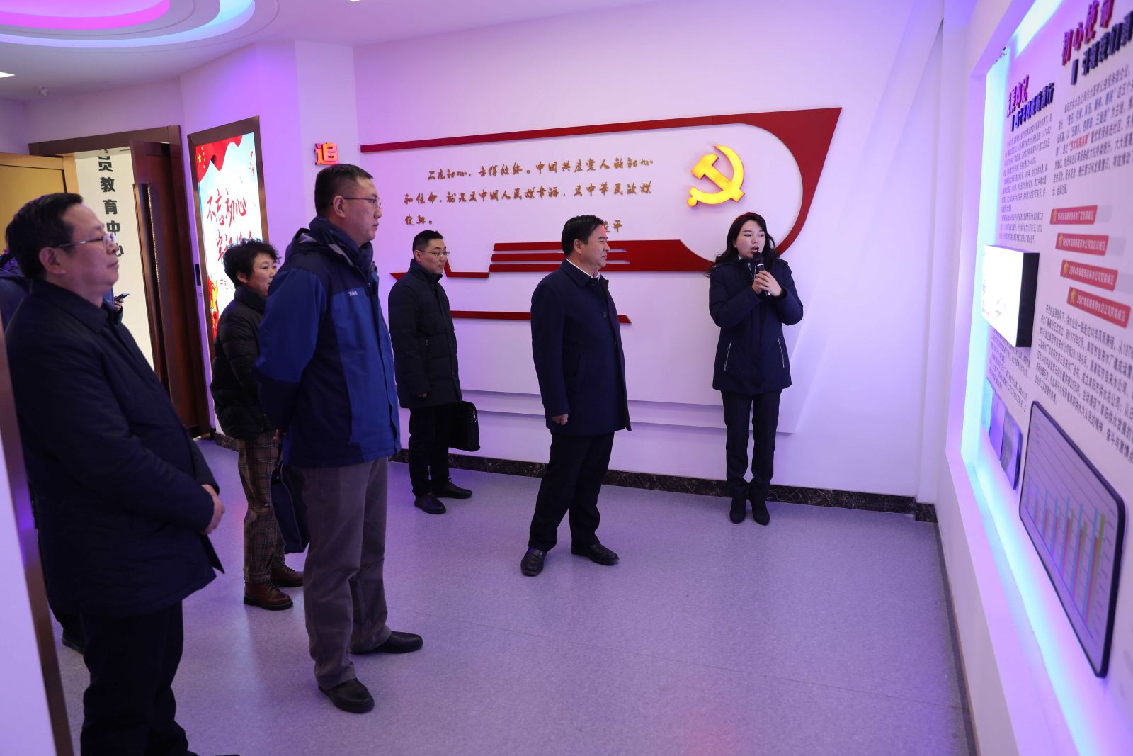 詹国庆一行先后参观了总公司文明创建文化走廊、企业文化走廊、党建文化走廊、廉政文化走廊、党员教育中心及党员大讲堂等宣传阵地。