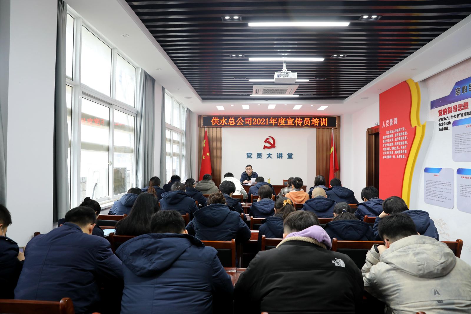 为加强我司宣传工作,提高宣传员队伍新闻知识素养和业务能力,3月9日上午,总公司举办宣传员培训班,党委办公室副主任武彪作专题讲解,各部门、各党支部宣传员参加。