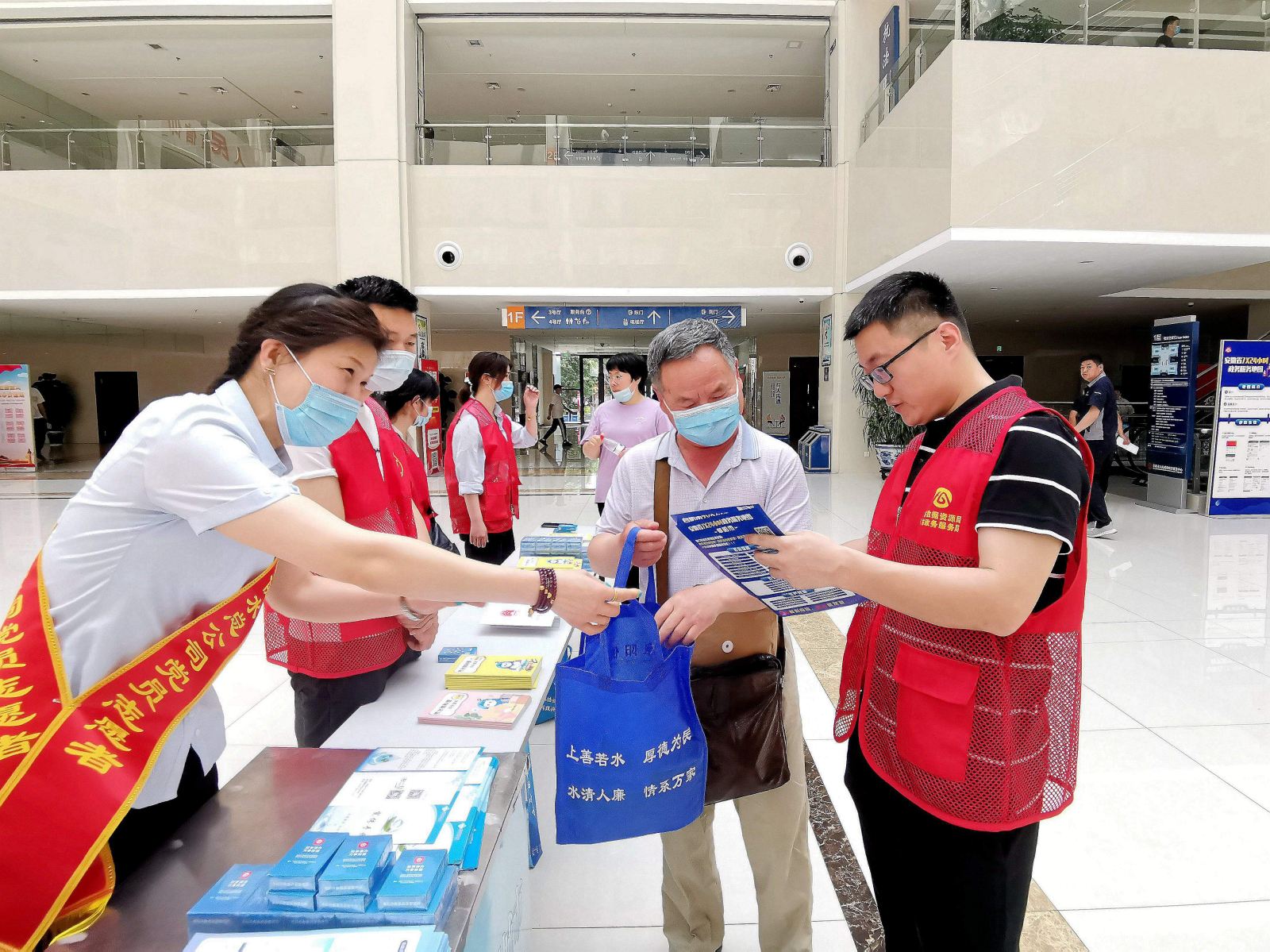 活动现场,总公司职工通过设立节水宣传服务站点的方式,向市民中心工作人员和过往市民介绍我市水资源现状、供水水源、节水常识,讲解生活中节约用水的好方法,并发放节水宣传手册和家庭节水常识等宣传资料,让大家在了解更多节水知识的同时,呼吁广大市民积极参与到节水行动中来,增强保护水资源、防治水污染、节约用水的意识。通过活动开展,不断提高市民参与积极性,扩大宣传面,增强全民节水意识,持续推动节水理念在广大市民心中落地生根,促进群众由“要我节水”向“我要节水”转变。